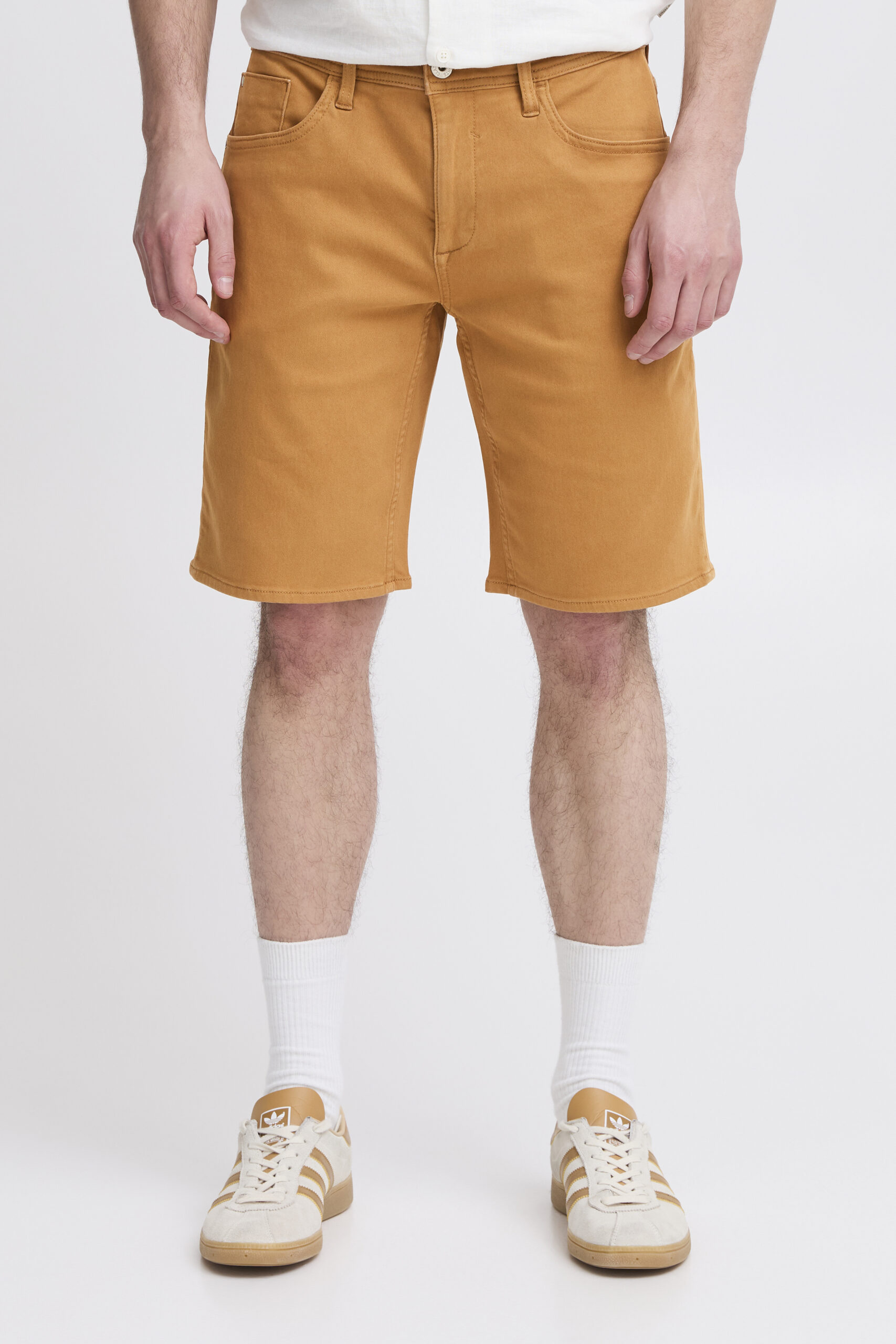 Blend Jogg Denim Korte Broek Knoop Brown Sugar. Zeer comfortabele korte broek van elastisch materiaal.