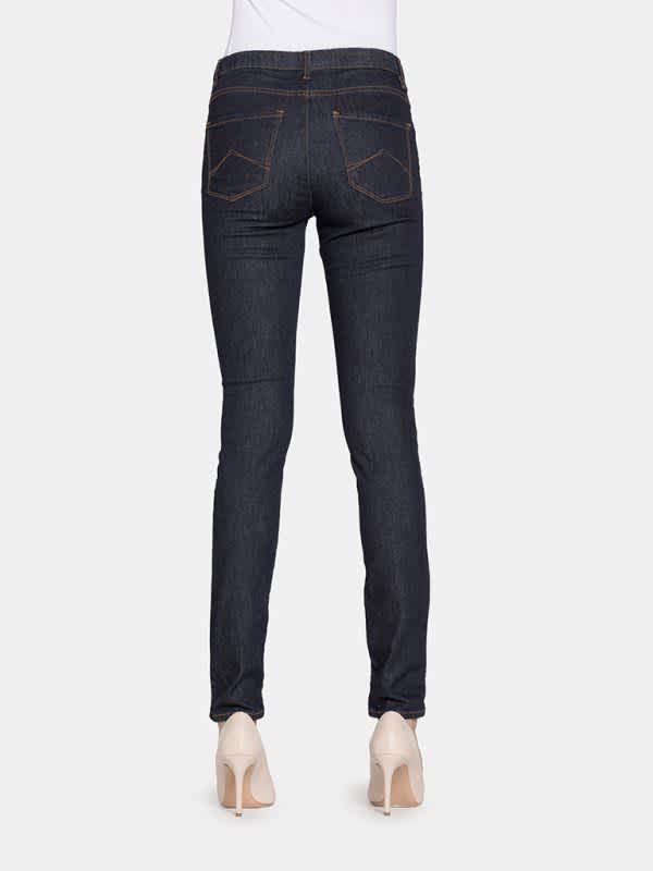 Jegging jeanskleur donker. Jegging heeft de uitstraling van jeans, maar draagt als een legging. De zakjes en knoop aan de voorkant zijn voor de sier. De jegging heeft wel kleine achterzakken. Het is mogelijk om een riem door de lusjes te dragen. De jeggings zijn zeer elastisch en daardoor dragen ze zeer prettig en passen ze goed bij ons concept.