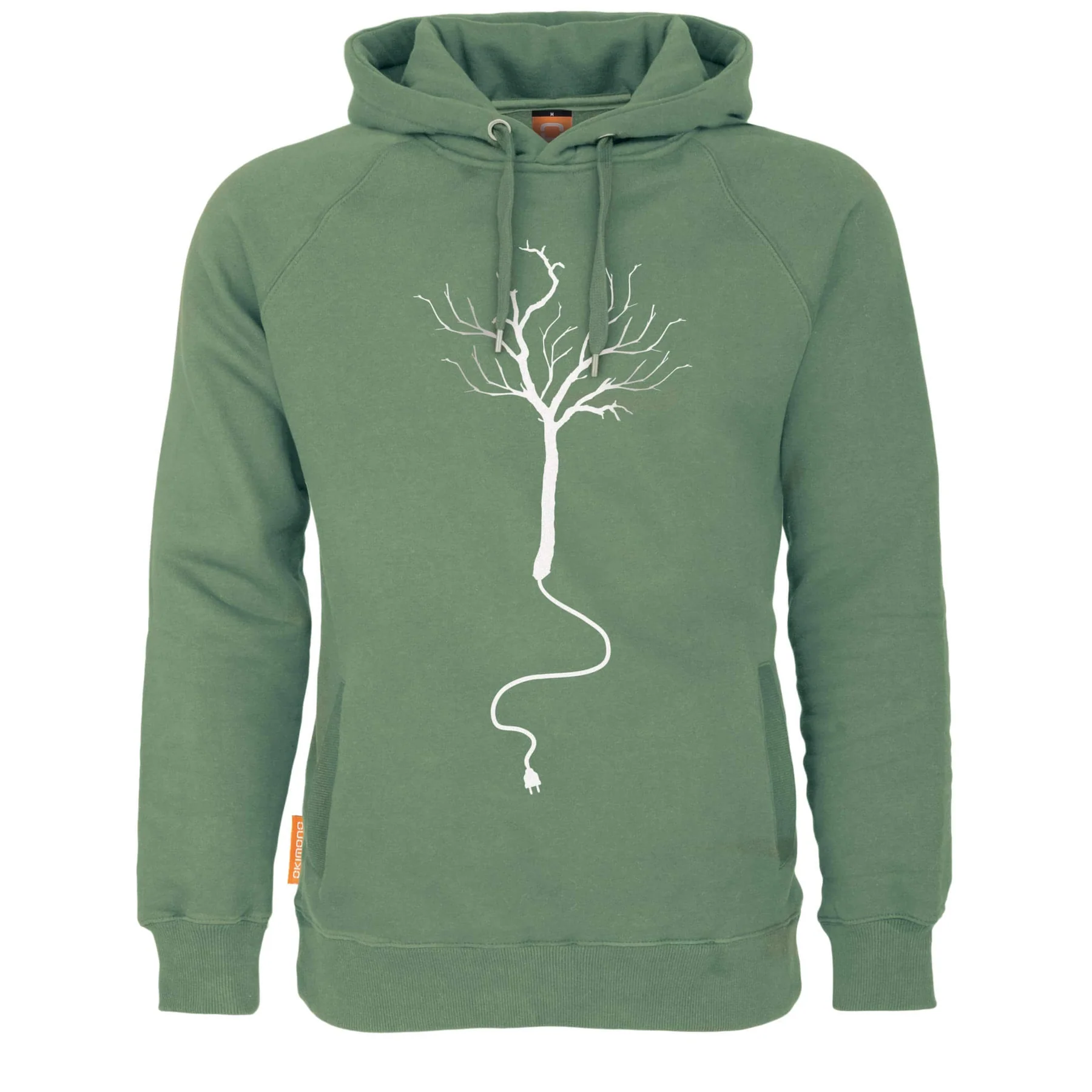 Okimono hoodie heren, Recharge them woods. Het grafisch ontwerp van Freek Maandag steekt onze bomen een groen hart onder de riem. Slim, fraai en buitengewoon mooi beeld.